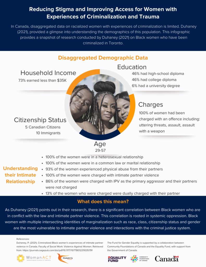 This infographic draws on Canadian research to highlight the impact of intimate partner violence on the experience of criminalization among Black women.